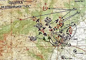 Operation MH (Macedonian: Операција МХ) was the first major offensive by the combined forces of the Macedonian Army and police forces in the 2001 insurgency in Macedonia. The goal of the operation was to dislodge the NLA forces which were entrenched in Tetovo and the hills and villages in its vicinity.[17]