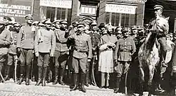 In July, the Polish High Command decided to strike one more blow against the Bolsheviks and to cripple the Russian Army's Western Division, headquartered in Minsk.[8] The assault on the vital railway centre by the Polish Northern Group was led by General Stanisław Szeptycki, whose officers included Władysław Anders, Józef Adam Lasocki and Stefan Mokrzecki. Their forces were composed of 12,000 infantry, 2,000 cavalry and 40 guns. The Polish plan involved a wide pincer movement around the city of Minsk. The battle raged throughout the first week of August. The Soviet forces took heavy casualties and retreated. On 8 August 1919, the Polish troops took over Minsk.[3][9]