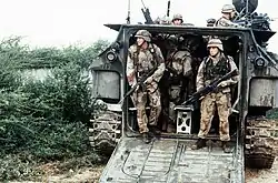 The vast bulk of UNITAF's total personnel strength was provided by the United States (some 25,000 out of a total of 37,000 personnel). Other countries that contributed to UNITAF were 1st Battalion, Royal Australian Regiment from Australia (January–May 1993), Bangladesh, Belgium, Botswana, Canada, Egypt (one battalion), Ethiopia, France (brigade HQ and one battalion), Germany, Greece (medical company at Waajid), the Indian Army (brigade HQ at Baidoa and three battalions), Ireland (transport company), Italy, Indonesia, Kuwait, Morocco, elements of No. 40 Squadron RNZAF from New Zealand, Nigeria, Norway, Pakistan, Saudi Arabia, Spain, Sweden, Tunisia, Turkey, United Arab Emirates, the United Kingdom, and Zimbabwe.[26] The national contingents were co-ordinated and overseen by U.S. Central Command, however, the relationship between CentCom and the contributing nations varied. There were a few confrontations over the methods and mandates employed by some contingents. For example, the Italian contingent was accused of bribing local militias to maintain peace, whilst the French Foreign Legion troops were accused of over-vigorous use of force in disarming militiamen.[27] The Canadian contingent of the operation was known by the Canadian operation name Operation Deliverance.