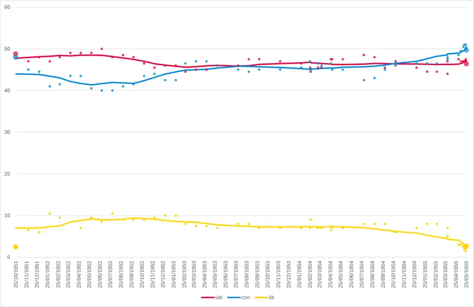 The date range for these opinion polls are from the 1951 general election until the 1955 general election.