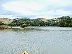 The Opotoru River is a river of the Waikato Region of New Zealand's North Island. It flows north, reaching the Raglan Harbour southwest of the town of Raglan.[2] There is no regular monitoring of pollution, but 38 kilometres (24 mi) (31.2%) of the river has been fenced to protect it from farm stock.[3]