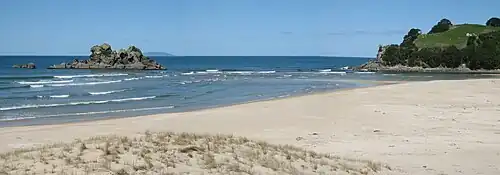 Opoutere is a locality and beach on the eastern side of the Coromandel Peninsula of New Zealand. It lies to the east of State Highway 25, south of Pauanui and north of Whangamatā.[1] The Wharekawa Harbour lies to the south east.[2][3]