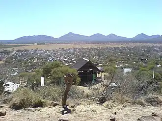 "Oppikoppi" was a colloquial abbreviation of the Afrikaans phrase "op die koppie", which literally means "on the hill".[1] The festival derives its name from the resort on the piece of land where it is held, featuring a picturesque hill on top of which there is a bar and a small original stage. Once a year, the festival grounds were erected at the foot of that hill, where many simultaneous performances took place on the several stages. Beyond this were the camping grounds. A stage on a second hill usually featured dance acts and DJs.