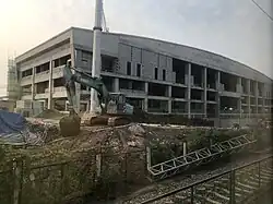 Construction of the railway station started on July 28, 2015.[2] And at first this new railway station was named Optics valley railway station (Chinese: 光谷火车站). It was renamed as Wuhan East railway station on August 31, 2022 according to the Rules of railway station naming.[3]