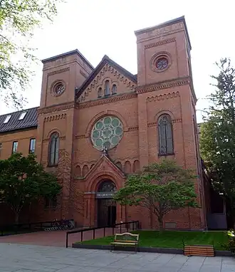 Construction of the church began on May 19, 1958, and lasted until August 24, 1961.[5] The church was consecrated in the fall of 1961 and serves as the principal liturgical space of both the monastic community and the university. The monastic community gathers for Morning Prayer, Midday Prayer, Mass, and Evening Prayer every weekday, and except for rare occasions these liturgies are open to the public.[9] On the weekends there is no public Midday Prayer. All liturgical events in the Abbey Church are livestreamed on the Abbey website.