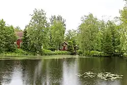 In the village Kimo (pronounced [ˈɕɪ̌mːʊ], Finland Swedish: [ˈtɕimu]) the ironworks Kimo bruk, (Kimo works) was founded in 1703 by the Stockholm businessman Petter Heijke, who already ran Orisberg works in the neighbouring municipality Storkyro.[8] Several helve hammers were built at the works; they were actuated by water power from the Kimo river. The ruins of the forge, which was built at the works in 1791, still remain. The enterprise came to an end in the 1860s; after that water mills were set up in the building. The mill was closed in 1979.[8] Since 1986, the old mill is the scene for an outdoor theater every summer. Historical plays, written by playwrights with local association, are often performed.[9]