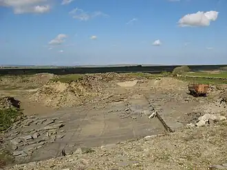 The Orcadian Basin is a sedimentary basin of Devonian age that formed mainly as a result of extensional tectonics in northeastern Scotland after the end of the Caledonian orogeny. During part of its history, the basin was filled by a lake now known as Lake Orcadie. In that lacustrine environment, a sequence of finely bedded sedimentary rocks was deposited, containing well-preserved fish fossils, with alternating layers of mudstone and coarse siltstone to very fine sandstone.[1] These flagstones split easily along the bedding and have been used as building material for thousands of years.[2] The deposits of the Orcadian Basin form part of the Old Red Sandstone (ORS). The lithostratigraphic terms lower, middle and upper ORS, however, do not necessarily match exactly with sediments of lower, middle and upper Devonian age, as the base of the ORS is now known to be in the Silurian and the top in the Carboniferous.[3]