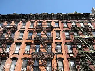 Orchard Street is often considered the center of the Lower East Side and is lined end to end almost entirely with low-rise tenement buildings with the iconic brick face and fire escapes. First part of Little Germany and later a Jewish enclave, the neighborhood has been home to immigrants from the mid-19th century to the present day. The street's past as the heart of the immigrant experience is captured at the Lower East Side Tenement Museum's centerpiece, the restored 97 Orchard Street tenement.