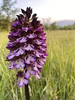 Orchis purpurea, the lady orchid, is a herbaceous plant belonging to the genus Orchis of the family Orchidaceae.