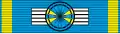 The ribbon of the Order is blue with orange edges. The first four grades have a ribbon of 35 mm, with 3 mm-wide edges, while the shash of the Grand Cross is 100 mm wide, with edges 8 mm wide.[1][3]