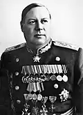 - ^ Brezhnev's receipt of the Order of Victory was controversial. Brezhnev was a young political commissar during the war who did reach the rank of lieutenant general (two-star rank), but did not command responsibility close to the other recipients of the Order. He only received the decoration after he was General Secretary of the Communist Party and thus able to essentially award the medal to himself. As a result of general hostility to Brezhnev after his death and belief that this award had been done out of vanity rather than earned from merit, the Order of Victory was posthumously revoked in 1989.[7]