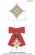 - Grand Cross: Cross is worn suspended from a sash worn over the shoulder with a breast star.