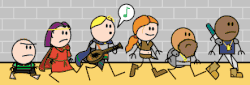 The Order of the Stick began its run on September 29, 2003, on what was Rich Burlew's personal site for gaming articles at the time. Burlew initially intended the strip to feature no plot whatsoever—depicting an endless series of gags drawn from the D&D rules instead—but Burlew quickly changed his mind, and he began laying down hints of a storyline as early as strip #13.[3] The strip was originally produced to entertain people who came to his website to read articles, but it quickly became the most popular feature, leading Burlew to eventually abandon writing articles almost entirely.[4]