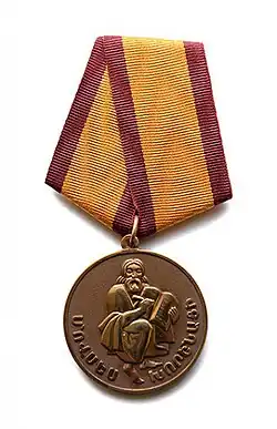 Movses Khorenatsi Medal is awarded for notable creative achievements in Armenian culture, arts, literature, education and the humanities. The law on the Movses Khorenatsi Medal has been in effect since July 26, 1993. It is named after Movses Khorenatsi.