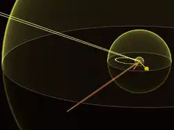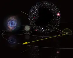 192. ^ radius = distance times sin(angular diametre/2) = 0.2 light-year. Distance = 3.3 ± 0.9 kly; angular diametre = 20 arcseconds (Reed et al. 1999)