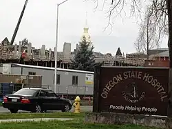 Amidst the public and federal criticisms against the hospital,[51] the board and trustees put forth a $458 million plan approved by the Oregon Legislative Assembly in 2007, which called for the construction of a replacement hospital in Salem with as many as 620 beds, as well as a 360-bed facility in Junction City.[47] Portions of the dilapidated, 125-year-old main Kirkbride building were torn down and replaced beginning in September 2008.[52] The same year, the entire hospital campus was listed on the National Register of Historic Places.[52] Construction of the new Salem facility began in 2009, and was completed around 2011; with the Junction City facility being completed in 2013.[47] Salem mayor Janet Taylor has called for the number of beds to be reduced to 320 or fewer, and another hospital facility to be built in or near Portland.[48]