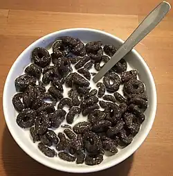Oreo O's is a breakfast cereal that consists of Oreo-flavored O-shaped pieces of cereal. It was conceived of by an Ogilvy & Mather NYC advertising employee and introduced in 1997 by Post Cereals. In 2001 the cereal got a new recipe with real creme filling.[5][6] A variation of Oreo O's called Extreme Creme Taste Oreo O's contained Oreo filling-flavored marshmallows.[7]
