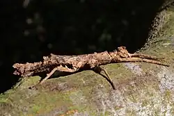 - ^ a b c d e Bank, S.; Buckley, T. R.; Büscher, T. H.; Bresseel, J.; Constant, J.; de Haan, M.; Dittmar, D.; Dräger, H.; Kahar, R. S.; Kang, A.; Kneubühler, B.; Langton-Myers, S. & Bradler, S. (2021). Reconstructing the nonadaptive radiation of an ancient lineage of ground-dwelling stick insects (Phasmatodea: Heteropterygidae), Systematic Entomology, DOI: 10.1111/syen.12472