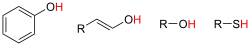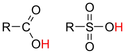 An organic acid is an organic compound with acidic properties. The most common organic acids are the carboxylic acids, whose acidity is associated with their carboxyl group –COOH. Sulfonic acids, containing the group –SO2OH, are relatively stronger acids. Alcohols, with –OH, can act as acids but they are usually very weak. The relative stability of the conjugate base of the acid determines its acidity. Other groups can also confer acidity, usually weakly: the thiol group –SH, the enol group, and the phenol group. In biological systems, organic compounds containing these groups are generally referred to as organic acids.