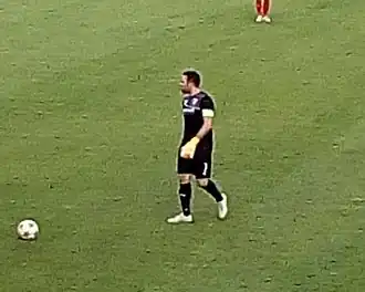 In July 2016, following the retirement of long-time servant Bledi Shkëmbi, Shehi was named the new team captain.[36] Shehi did not play any Champions League matches for the 2016–17 season as Skënderbeu was excluded from the competition by UEFA for match-fixing.[37] He debuted in the new season on 24 August in the 2016 Albanian Supercup match against Kukësi, conceding three times in a 3–1 defeat at Selman Stërmasi Stadium.[38]