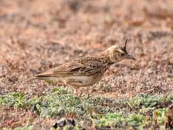 The Oriental skylark (Alauda gulgula), also known as the small skylark, is a species of skylark found in the Sino-Indian region and parts of central Asia. Like other skylarks, it is found in open grassland where it feeds on seeds and insects.