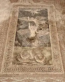 ![]() A mosaic depicting the transformation of the hunter, Orion, into the constellation, by the will of Zeus. | |