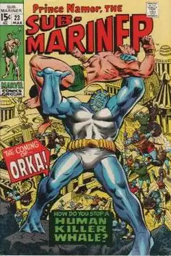Orka first appears in Prince Namor, the Sub-Mariner #23 (March 1970) and was created by Roy Thomas and Marie Severin.[2]