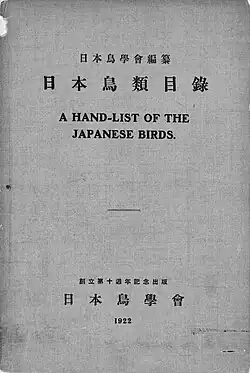 ![]() First edition of the Society's Check-list of Japanese Birds (「日本鳥類目録」) | |