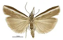 - ^ a b Gaskin, D. E. (1975). "Revision of the New Zealand Crambini (Lepidoptera: Pyralidae: Crambinae)". New Zealand Journal of Zoology. 2 (3): 265–363. doi:10.1080/03014223.1975.9517878.