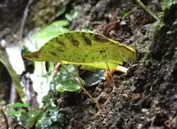Orophus tessellatus, the false leaf katydid,[2] is a species of katydid native to Mexico, Central America, and South America.[1][3] It is in the large subfamily Phaneropterinae within the tribe Amblycoryphini.[1] Its coloring varies from brown to green, some with spots, mottling, or uniform in coloration.[4] The body length reaches 16 mm (0.63 in) in males and 22 mm (0.87 in) in females. The ovipositor is approximate 7 mm (0.28 in) in length.[3] The species is characterized by the size of the forewings and their "dirty" coloring.[3]