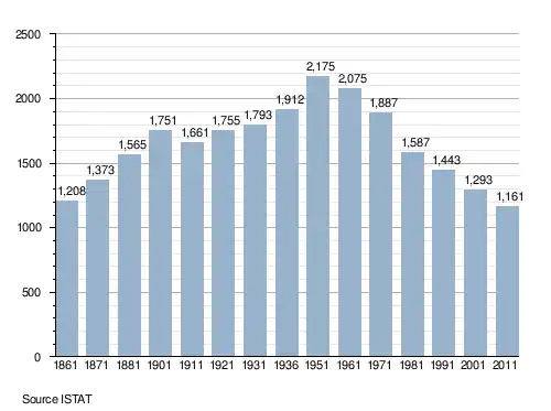 - ^ "Superficie di Comuni Province e Regioni italiane al 9 ottobre 2011". Italian National Institute of Statistics. Retrieved 16 March 2019.