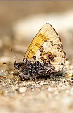 Orthomiella pontis, the straightwing blue, is a small butterfly found in India that belongs to the lycaenids or blues family.