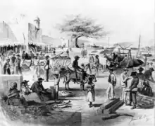 Babcock's next visited Santo Domingo City but found that President Buenaventura Báez was not there. Babcock was entertained by Cazneau and his wife at their plantation house.[41] After his stay in Santo Domingo City, Babcock reboarded the Tybee and voyaged to Azua, 60 miles away, where President Báez was staying.[42] Babcock recorded that Báez was in favor of friendly relations with the United States.[43] Nothing, however, was talked about annexation, until Babcock and Báez returned to Santo Domingo City.[44]