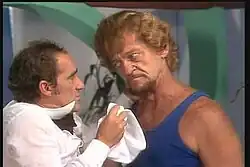 While he was separated from his partner, Dedé Santana was hired by the SBT channel to star in the 2005 comedy series "Dedé e o Comando Maluco", which was done in partnership with businessman Beto Carrero.[11][12] In the series Santana interacted with the comedy group Comando Maluco, derived from the Beto Carrero World park and who previously appeared on the programs Eliana & Alegria and A Praça É Nossa. The show had a good audience to the point of competing with Turma do Didi in the same time slot,[13] however, at the beginning of 2006, the program was changed for the Saturday's afternoons, and after Carrero's death in 2008 the show was cancelled.