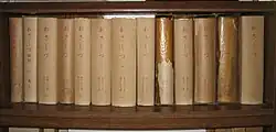 A few years later, the Osashizu was consolidated into a set of eight volumes from 1936 to 1937, honoring two important anniversaries – the 50th anniversary of Nakayama Miki's death and the 100th anniversary of the founding of Tenrikyo. The scripture was issued to all Tenrikyo churches as a commemorative gift.[6]