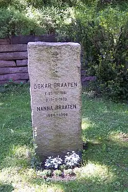 Oskar Braaten and Nanna Thorvaldsen were married in 1910. Oskar and Nanna had a son Bjorn in 1912, and daughter Berit in 1918. In 1921, the family moved to Ullevål Hageby, a residential area in the Nordre Aker borough of Oslo.