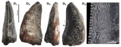 - ^ Hendrickx, Christophe; Mateus, Octávio; Araújo, Ricardo; Choiniere, Jonah (2019). "The distribution of dental features in non-avian theropod dinosaurs: Taxonomic potential, degree of homoplasy, and major evolutionary trends". Palaeontologia Electronica. doi:10.26879/820. hdl:11336/146011. ISSN 1935-3952.