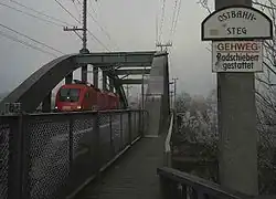 The Ostbahnbrücke was rebuilt in 1946. It is not known whether the narrow footpath beside the bridge existed before this time. In its publication “Querungen – Brücken-Stadt-Wien” (Crossings – Bridges – City – Vienna), the City of Vienna's department with responsibility for the city's bridges (Magistratsabteilung 29) lists the footpath as a separate structure (Object number 0207 0).