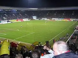 The total capacity of 29,000 places includes 1000 "business seats" as well as a standing capacity of 9,000. During international matches the 9,000 standing places can be turned into 5,000 seats thus allowing for an audience of 25,000. Moreover, there are 26 business lounges for premium partners and sponsors.
