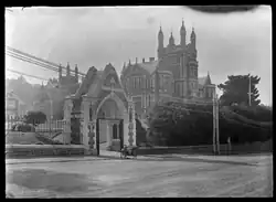 The school opened on its present site in Arthur Street in 1885. The Main Tower Block was designed by Robert Lawson and built for £14,800[7] in blue stone, Port Chalmers breccia and Oamaru stone by W A Carlton. It has long been regarded as a fine design and is listed as a Category I Historic Place.[8]
