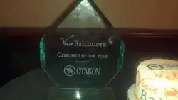 From 1999 to 2016, Otakon was held at the Baltimore Convention Center in Baltimore, Maryland. In 2011, the Baltimore city tourism agency, Visit Baltimore, gave Otakon a "Customer of the Year" award for "demonstrat[ing] ongoing commitment to Baltimore, bringing more than 27,000 attendees to the city every year, a much-anticipated event by the local community and media".[53] Otakon has been a top convention for Baltimore since 2003.[54] Otakon 2009 had an economic impact of $12.5 million in direct spending and booked over 4,500 hotel rooms. According to the Baltimore Business Journal on December 10, 2010, Otakon 2010 had 4,575 booked hotel rooms and an estimated economic impact of $15.3 million, up from $12.5 million the year before;[55] in particular it had significant impact on food vendors.[56]