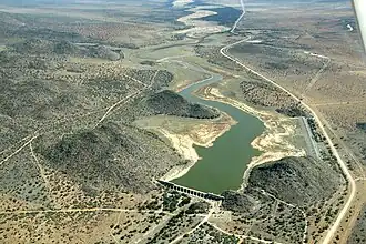 West of Otjivero and Omitara the Otjivero Dams are situated. They comprise a main dam and a silt dam and store the water of the White Nossob River.[7]