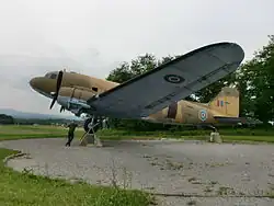 A Partisan airport was located near Otok during World War II. The building of the simple grass runway began in spring 1944. The airport was ready for operation in June. Its military code name was EKG 2 and the commander was Stane Oberstal. The first aircraft landed there in September the same year. The airport was used by Allied airforces in order to deliver humanitarian and military aid, and to evacuate wounded and other people. It was used by Soviet aircraft until the end of 1944 and by British and American aircraft until March 1945.[4] The airport was part of three other Partisan airports in the vicinity: Krasinec, Griblje, and Prilozje after the first airport Podlesk ceased operation in September 1944. Today an original DC-3 airplane on the fields near Otok serves as a memorial for the airport and the Allied help.