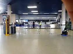 Station services included free Wi-Fi and a travel lounge with seating, tables, power outlets. The lounge was open at all times to travelers in the station. The station also offered a number of vending machines with hot and cold beverages, food, candy, as well as earbuds.[10] In addition, the station offered a baggage storage service for passengers.[11] There was also an ATM and a Mr. Sub restaurant in the terminal.