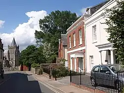 The Chanter's House is a Grade II listed building. The Listing summary states: "Dates from the days of the College but little trace of antiquity remains, mainly enclosed by large brick outer additions by Butterfield including a 3rd storey, extending also above the C18 ... The C17 centre is the former Heath's Court ..."[14] It dates from the 17th century, incorporating parts of the former Precentor's house, known as Heath's Court. In 1645, Oliver Cromwell held a convention in the house's dining room, and Thomas Fairfax stayed at the house from October to December in that year.[15] The building served as the headmaster's lodging for the King's School. Samuel Taylor Coleridge grew up here after his father, Rev. John Coleridge, moved there after being appointed headmaster and vicar of St Mary's Church in 1769.[16] The property remained in the Coleridge family until 2006, when it was sold to Max Norris who completed a major renovation over five years.[17]