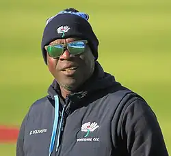 Ottis Delroy Gibson (born 16 March 1969) is a cricket coach and former cricketer from Barbados, who played for the West Indies. From 2010 to 2014, Gibson was the head coach for the West Indies, where he led the team to be champions of the 2012 T20 World Cup. He has been appointed as Bangladesh bowling head coach[1][2] and previously twice worked as bowling coach for England, from 2007 to 2010 and again from 2015 to 2017.[3][4] Gibson also coached the South African cricket team from 2017 to 2019. He was the pace bowling coach of the Bangladesh national cricket team and Multan Sultans. In January 2022 Gibson was appointed the head coach of Yorkshire County Cricket Club, he is set to join the team after the conclusion of the 2022 Pakistan Super League season.