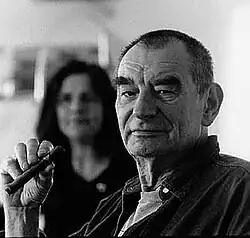 In the 1960s, Muehl's aim was 'to overcome easel painting by representing its destruction process'.[4] He made rhizomatic structures with scrap iron ("Gerümpelplastiken"), but soon proceeded to the "Aktion" in the vein of the New York Happenings. In 1962, when he was 37, the first "Aktion" "Die Blutorgel" was performed in Muehl's atelier on Perinetgasse by Muehl himself, Adolf Frohner, and Hermann Nitsch. The "Fest des psycho-physischen Naturalismus" and "Versumpfung einer Venus" followed in 1963. From 1964 to 1966, many "Malaktionen" were filmed by Kurt Kren and photographed by Ludwig Hoffenreich. In 1966, a new concept of Aktion was developed with Günter Brus: instead of the canvas, the body became the scene of action. In 1968, Muehl, Brus, and Oswald Wiener organized an Aktionsveranstaltung titled Kunst und Revolution in the University of Vienna, which caused a scandal in the press; they were arrested and Brus emigrated to Berlin.