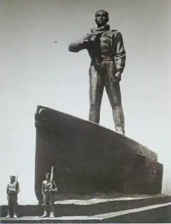 When the German submarine force was rebuilt, the first newly founded flotilla was named after Weddigen in 1935.[11] Karl Dönitz was the first commander. The boat U-9, like Weddigen's U-9, bore the Iron Cross as a turret badge. Department 6/160 of the Reich Labor Service in Herford was also named after Weddigen. In 1937, the newly built youth hostel in Wilhelmshaven - Rüstringen was given the name Weddigen Youth Hostel. During this time, Leitz built both an underwater camera and a pair of prism binoculars called Weddigen under the brand name Leica. In Herford in 1937, a monument to Weddigen by Ernst Paul Hinkeldey was erected.[12]