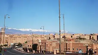 The Kasbah Taourirt is the city's historic kasbah (fortified residence, or tighremt in Berber languages). It was owned and expanded by the Glaoui family in the late 19th century and the 20th century.[18][19] Built mainly of rammed earth, it is one of the most impressive examples of this type of structure, which characterizes the architecture of the predominantly Berber-inhabited Atlas mountain and oasis regions of Morocco.[18]