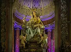 The canonical coronation was further authorised by Pope John XXIII, which occurred on 25 March 1960 via the Papal legate Cardinal Valerian Gracias of Bombay.[2] on 5 January 2011, Pope Benedict XVI approved the patronage by assigning the Marian title was the principal patroness for the Apostolic Vicariates of Kuwait and the Apostolic Vicariate of Arabia,[1] which were later renamed as Apostolic Vicariate of Northern Arabia[4] and Apostolic Vicariate of Southern Arabia.[5]